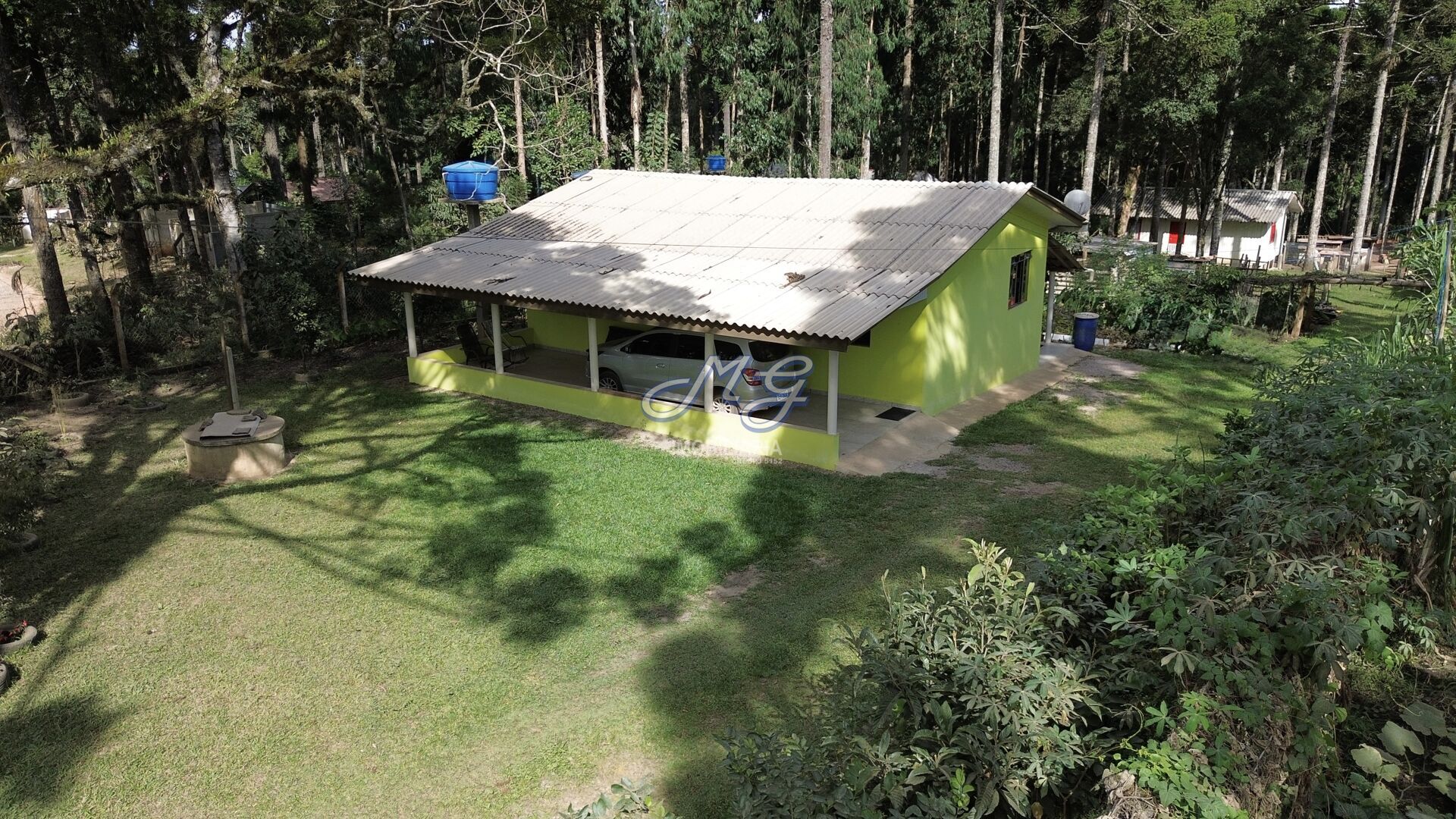 O imóvel conta com duas residências. A casa principal, em alvenaria, possui aproximadamente 125,00 m², sendo composta por 2 quartos, sala, cozinha, 1 banheiro, área de serviço, além de espaço com churrasqueira e fogão a lenha, ideal para momentos de lazer. Dispõe ainda de 2 vagas de garagem cobertas.