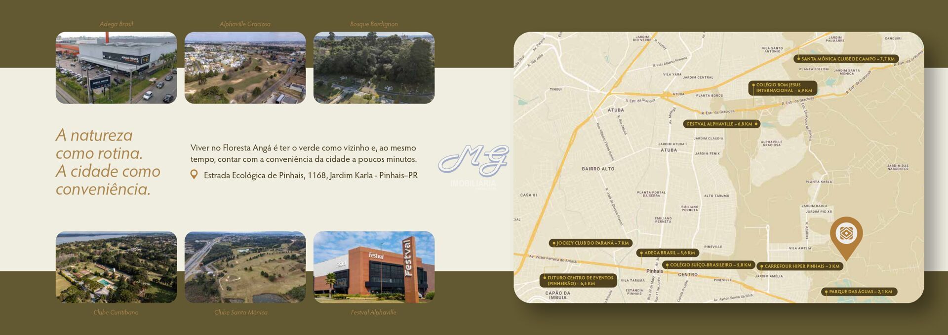 Localizado em Pinhais/PR, na Estrada Ecológica de Pinhais, o empreendimento une o melhor dos dois mundos: o verde como vizinho e fácil acesso à cidade, com comércios, serviços e vias principais a poucos minutos.